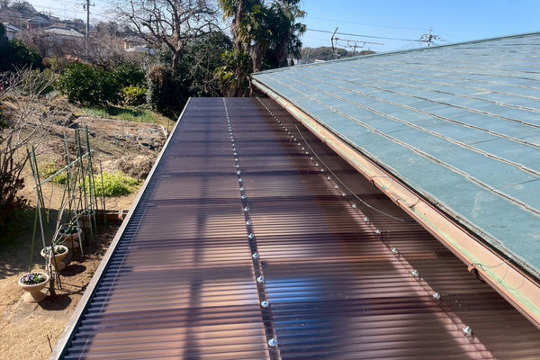 現地調査にて屋根材の色あせや劣化、破損が確認されたため、将来的な安心とコストパフォーマンスを両立できる「カバー工法」をご提案いたしました。