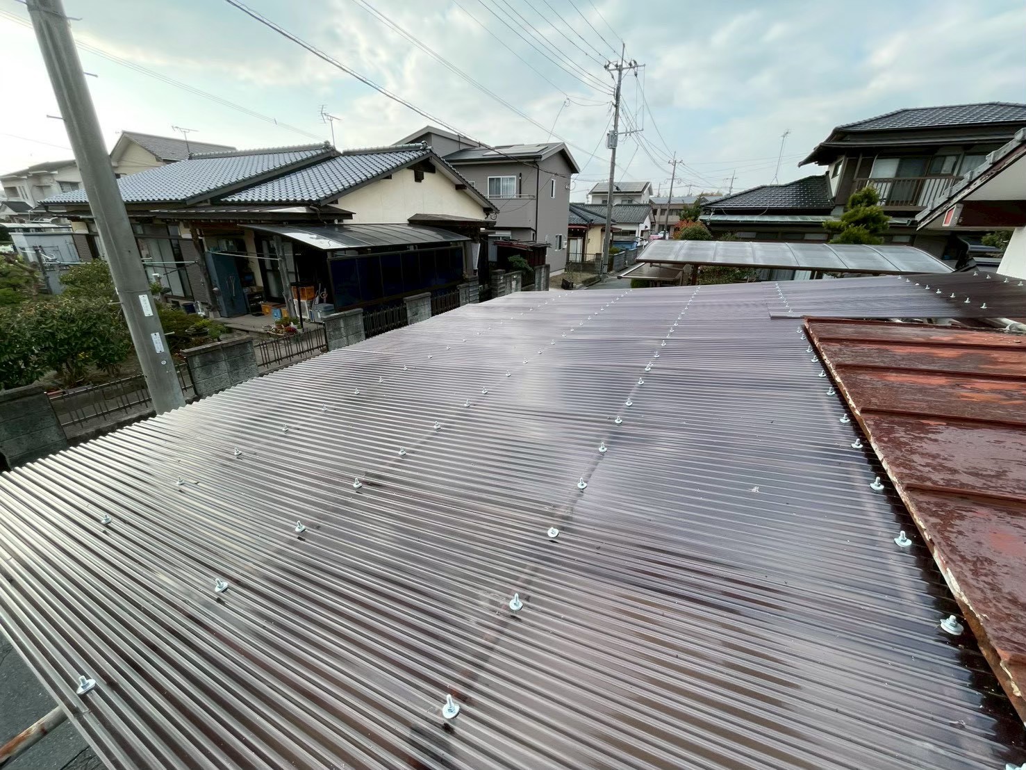 経年劣化した屋根の土台(木材)を、腐食に強い新しいものへと新調し、あわせてタキロンの入り替えを行いました。表面をきれいにするだけでなく、見えない基盤から徹底的に作り直すことで、雨漏りの不安を解消し、住まいの耐久性を根本から高めています。