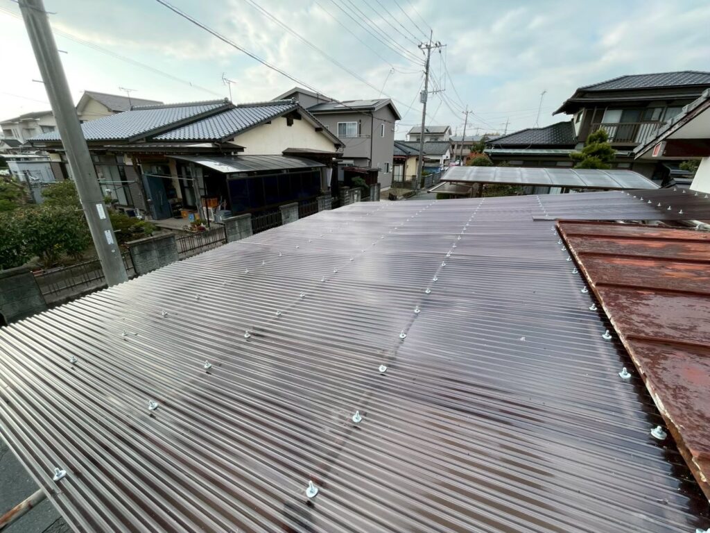 荒尾市にて、サンルームの波板交換工事を行いました。経年劣化で変色やひび割れが進んでいた波板を新調することで、サンルーム本来の明るい光が差し込む空間を再生。2日間で迅速かつ丁寧に仕上げ、雨漏りの不安を解消するとともに、見た目にも清潔感あふれる心地よいリラックススペースへと生まれ変わりました。